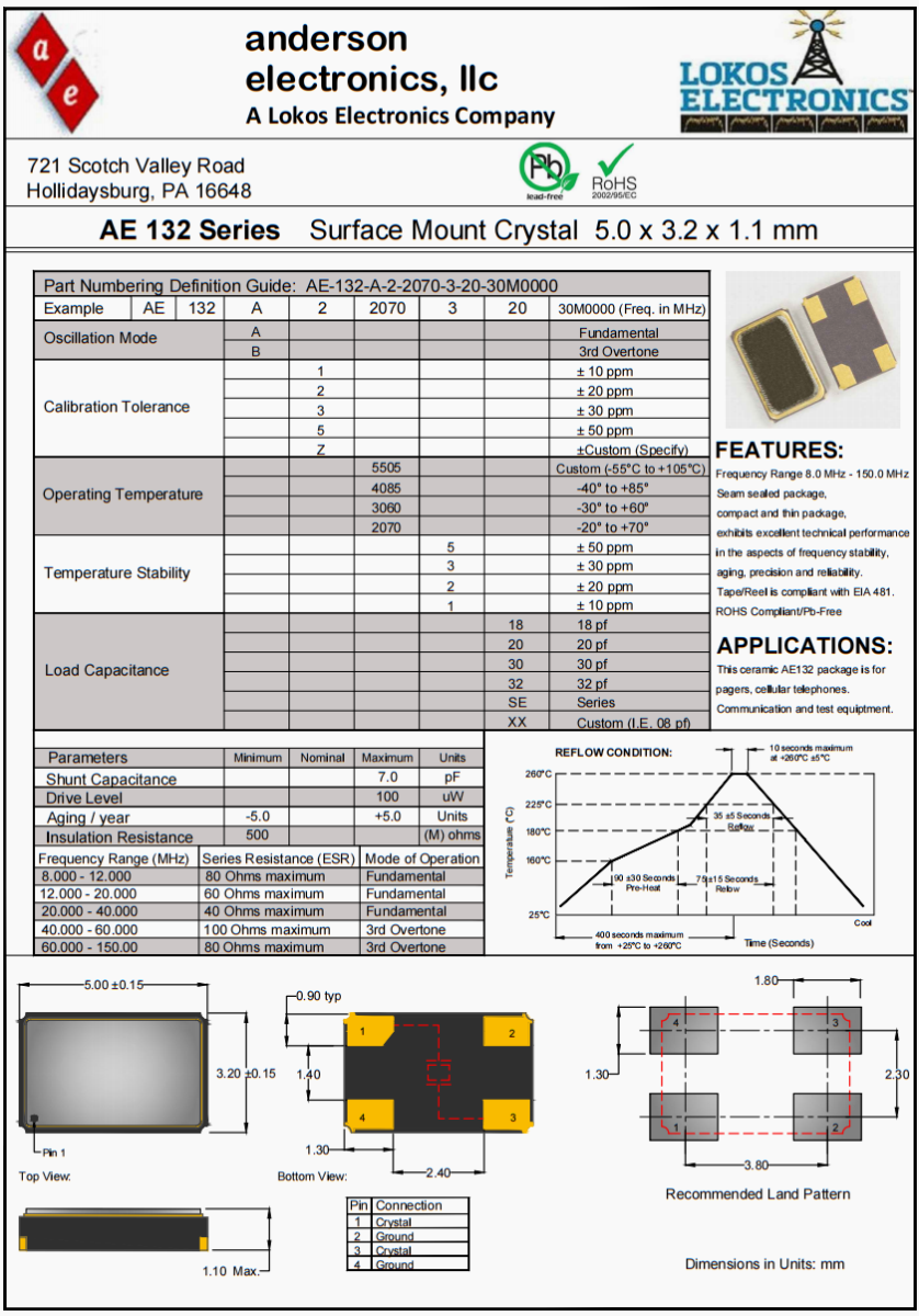 安德森進(jìn)口無源晶振,AE132汽車大燈晶振,AE-132-A-2-2070-3-20-30M0000高品質(zhì)晶振,美國安德森晶振公司,Anderson晶振,AE-132晶振,無源晶振,貼片晶振,7050晶振,高精度晶振,高品質(zhì)晶振,美國晶振,進(jìn)口晶振,低損耗晶振,高質(zhì)量晶振,通訊設(shè)備晶振,路由器晶振,石英晶振,產(chǎn)品具有高精度超小型的表面貼片型石英晶體振蕩器,最適用于移動(dòng)通信終端的基準(zhǔn)時(shí)鐘等移動(dòng)通信領(lǐng)域.比如智能手機(jī),無線通信,衛(wèi)星導(dǎo)航,平臺(tái)基站等較高端的數(shù)碼產(chǎn)品,晶振本身小型,薄型具備各類移動(dòng)通信的基準(zhǔn)時(shí)鐘源用頻率,貼片晶振具有優(yōu)良的電氣特性,耐環(huán)境性能適用于移動(dòng)通信領(lǐng)域,滿足無鉛焊接的高溫回流溫度曲線要求,符合RoHS/無鉛。