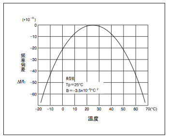 "Q-SC32S03205C5ADE",音叉型石英晶振的頻率溫度特性如左側(cè)的曲線圖所示,顯示了以+25°C為頂點(diǎn)的負(fù)向2次方程曲線. 溫度范圍越寬,則頻率的變化量也越大,因此,需要 考慮一下所使用環(huán)境的溫度范圍和必要的精度.