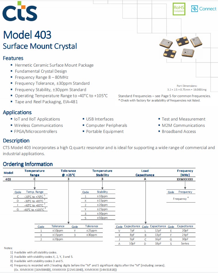 | 403I35D18M43200 | CTS晶振 | 403 | 18.432MHz | 4-SMD, No Lead |