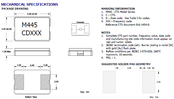 CTS晶振445,445C25D25M00000陶瓷晶振,西迪斯晶振 尺寸圖