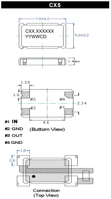 Cardinal晶振,CX5Z-A5B2C4-40-27.0D18,6G無(wú)線通信晶振尺寸圖