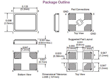 CS-044C-054.0M|3225小體積晶振|6G路由器晶振尺寸圖