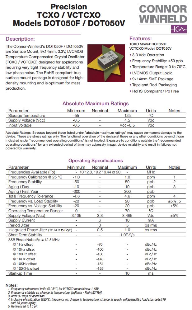 DOT050F-020.0M,TCXO晶振,6G模塊晶振,美國進口晶振,康納溫菲爾德晶振,DOT050F有源晶振,DOT050F-020.0M晶振,石英晶體振蕩器,TCXO晶振,LVCMOS輸出晶振,頻率20MHz,電壓3.3V,工作溫度0~70°C,頻率穩(wěn)定性50ppb,高頻率穩(wěn)定性晶振,高品質(zhì)晶振,6G模塊晶振,光纖通道晶振,航空電子設(shè)備晶振,微處理時鐘晶振,電信設(shè)備晶振.