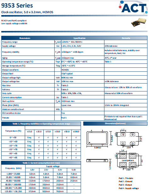 ACT晶振,9353晶振,高質(zhì)量有源振蕩器.智能手機(jī)晶振,產(chǎn)品具有高精度超小型的表面貼片型石英晶體振蕩器,最適用于移動通信終端的基準(zhǔn)時(shí)鐘等移動通信領(lǐng)域.比如智能手機(jī),無線通信,衛(wèi)星導(dǎo)航,平臺基站等較高端的數(shù)碼產(chǎn)品,晶振本身小型,薄型具備各類移動通信的基準(zhǔn)時(shí)鐘源用頻率,貼片晶振具有優(yōu)良的電氣特性,耐環(huán)境性能適用于移動通信領(lǐng)域,滿足無鉛焊接的高溫回流溫度曲線要求.