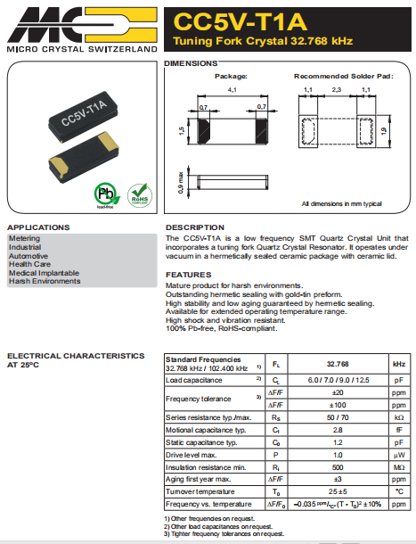 | Microcrystal晶振 | 單位 | CC5V-T1A晶振 | 石英晶振基本條件 |