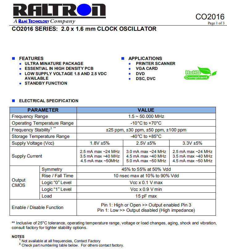 Raltron晶振,CO2016晶振,石英晶體振蕩器.有源晶振只是晶體本身起振需要外部電壓供應(yīng),起振后可直接驅(qū)動(dòng)CMOS集成電路,產(chǎn)品本身已實(shí)現(xiàn)與薄型IC(TSSOP封裝,TVSOP封裝)同樣的1mm厚度,斷開(kāi)時(shí)的消費(fèi)電流是15µA以下,編帶包裝方式可對(duì)應(yīng)自動(dòng)搭載及IR回流焊接(無(wú)鉛對(duì)應(yīng))產(chǎn)品有幾種電壓供選1.8V,2.5V,3V3.3V,5V,以應(yīng)對(duì)不同IC產(chǎn)品需要.