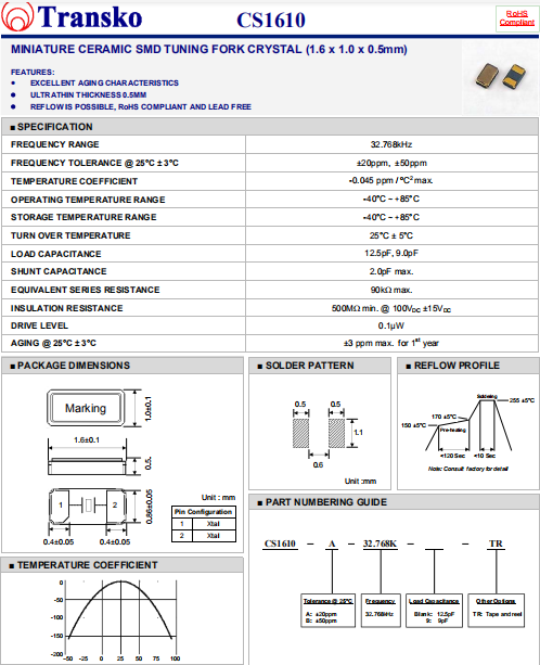 | Transko晶振 | 單位 | CS1610晶振 | 石英晶振基本條件 |