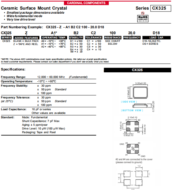 | Cardinal晶振 | 單位 | CX325晶振 | 石英晶振基本條件 |