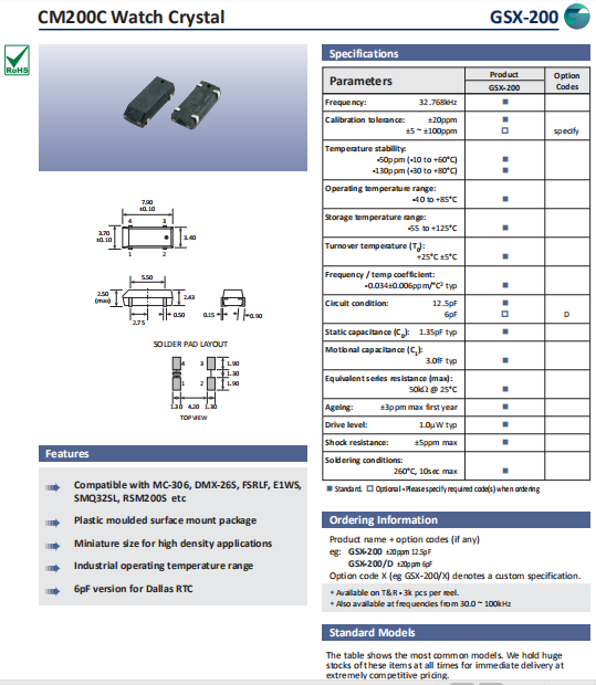 | Golledge晶振 | 單位 | GSX-200晶振 | 石英晶振基本條件 |