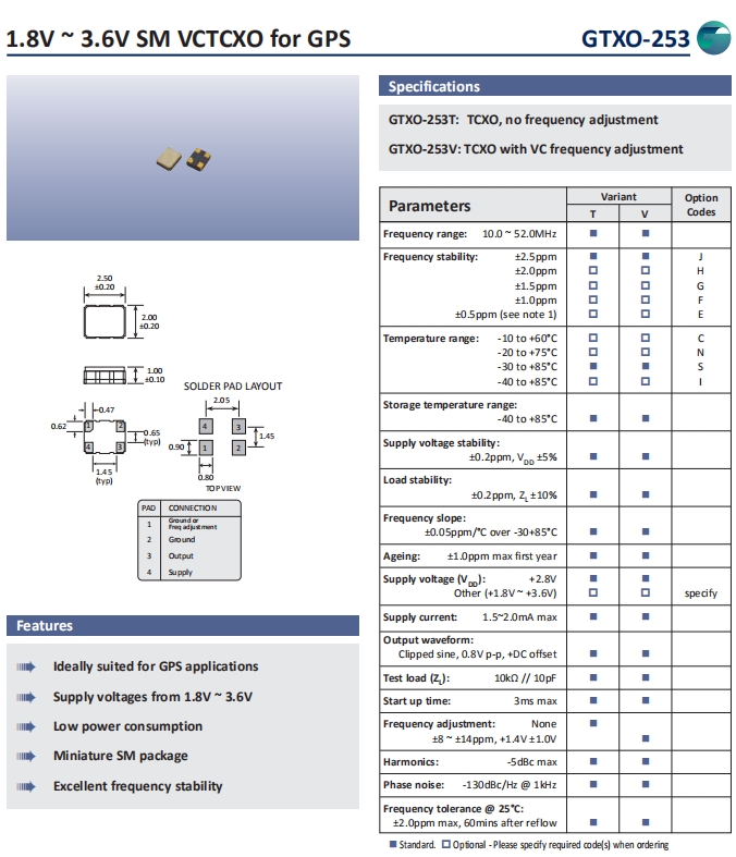 | 型號(hào) | 符號(hào) | GTXO-253 |
