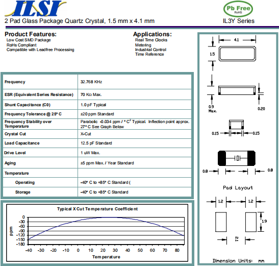 ILSI晶振,IL3Y晶振,無源環(huán)保晶體.32.768K系列具有超小型,薄型,質(zhì)地輕的表面貼片音叉型石英晶體諧振器,晶振產(chǎn)品本身具備優(yōu)良的耐熱性,耐環(huán)境特性,在辦公自動化,家電領域,移動通信領域可發(fā)揮優(yōu)良的電氣特性,符合無鉛標準,滿足無鉛焊接的回流溫度曲線要求,金屬外殼的石英晶振使得產(chǎn)品在封裝時能發(fā)揮比陶瓷晶振外殼更好的耐沖擊性能.