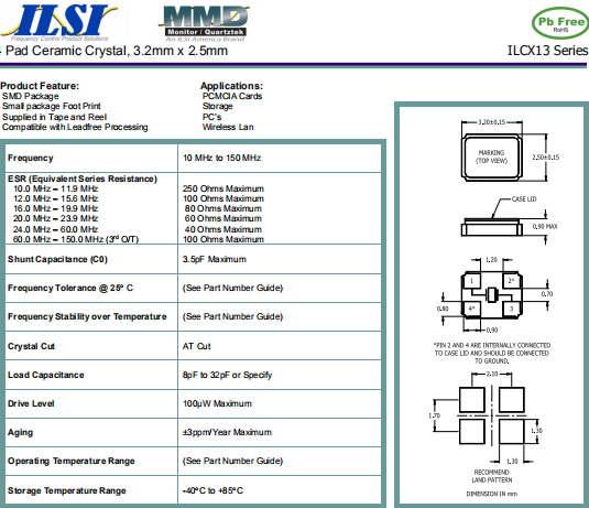 ILSI晶振,ILCX13晶振,無源環(huán)保晶體.3225mm體積非常小的SMDcrystal器件,是民用小型無線數(shù)碼產(chǎn)品的最佳選擇,小體積的環(huán)保晶振被廣泛應(yīng)用到,手機藍(lán)牙,GPS定位系統(tǒng),無線通訊集,高精度和高頻率的穩(wěn)定性能,非常好的減少電磁干擾的影響,是民用無線數(shù)碼產(chǎn)品最好的選擇,符合RoHS/無鉛.