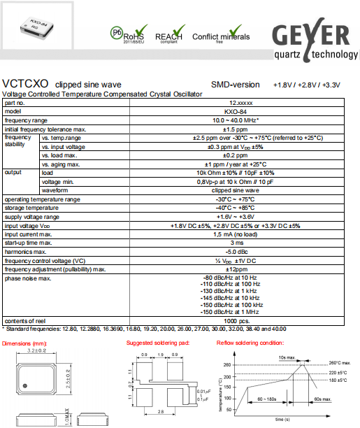 Geyer晶振,KXO-84晶振,壓控溫補晶振.有源晶振,是只晶體本身起振需要外部電壓供應(yīng),起振后可直接驅(qū)動CMOS 集成電路,產(chǎn)品本身已實現(xiàn)與薄型IC(TSSOP封裝,TVSOP封裝)同樣的1mm厚度,斷開時的消費電流是15 µA以下,編帶包裝方式可對應(yīng)自動搭載及IR回流焊接(無鉛對應(yīng))產(chǎn)品有幾種電壓供選1.8V,2.5V,3V3.3V,5V,以應(yīng)對不同IC產(chǎn)品需要.