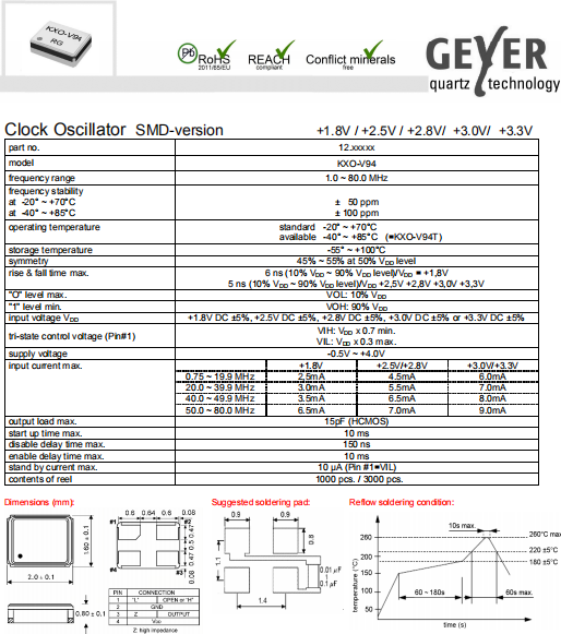 Geyer晶振,KXO-V94晶振,普通有源晶體振蕩器.貼片式石英晶體振蕩器,低電壓啟動功率,并且有多種電壓供選擇,比如有1.8V,2.5V,3.3V,3.8V,5V等,產品被廣泛應用于,平板筆記本,GPS系統(tǒng),光纖通道,千兆以太網,串行ATA,串行連接SCSI,PCI-Express的SDH / SONET發(fā)射基站等領域.符合RoHS/無鉛.