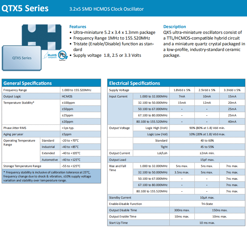 f_tol | ±20ppm,±25ppm,±50pm,±100ppm |