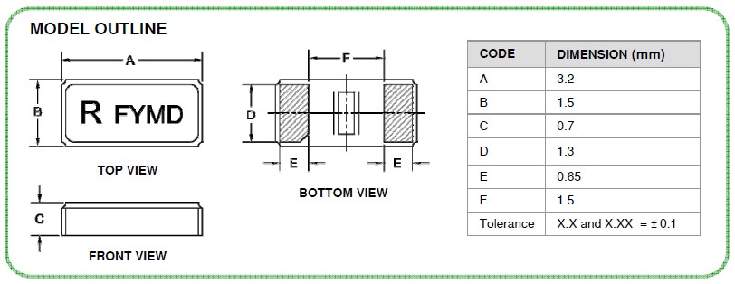 | 頻率溫度特征 | f_tem | ±50× 10-6 /-30°C~+85°C | 超出標準的規(guī)格請聯(lián)系我們. |