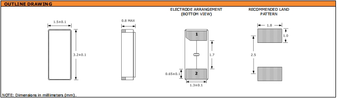 | 頻率溫度特征 | f_tem | ±50× 10-6 /-30°C~+85°C | 超出標準的規(guī)格請聯(lián)系我們. |