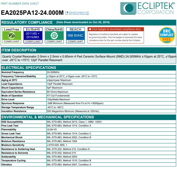 | Frequency Tolerance/Stability | ±10ppm at 25°C, ±15ppm over -20°C to +70°C |