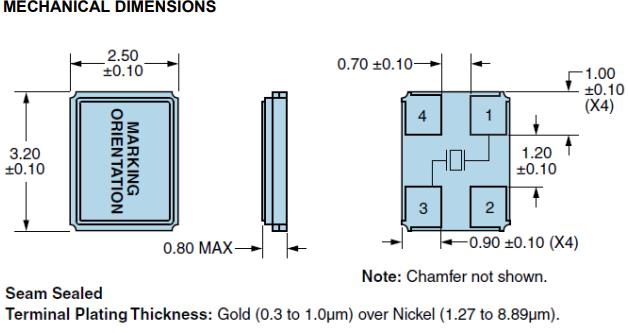 Ecliptek音叉晶體EB2532,EB2532JA12-27.000M-TR無源諧振器 尺寸圖