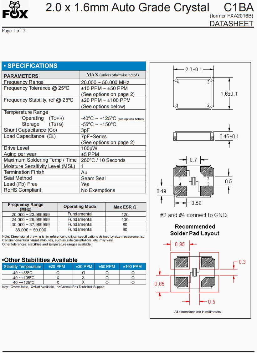 | 頻率容差 | ±10 PPM ~ ±50 PPM(See options on page 2) |