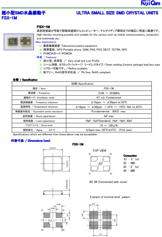 日本富士晶振,FSX-1M水晶振動子,GPS專用晶振,貼片晶振本身體積小,超薄型石英晶體振蕩器,特別適用于有目前高速發(fā)展的高端電子數碼產品,因為晶振本身小型化需求的市場領域,小型,薄型是對應陶瓷振蕩器(偏差大)和普通的石英晶體振蕩器(偏差小)的中間領域的一種性價比較出色的產品.產品廣泛用于筆記本電腦,無線電話,衛(wèi)星導航SSD,USB,Blu-ray等用途,符合無鉛焊接的高溫回流焊曲線特性.