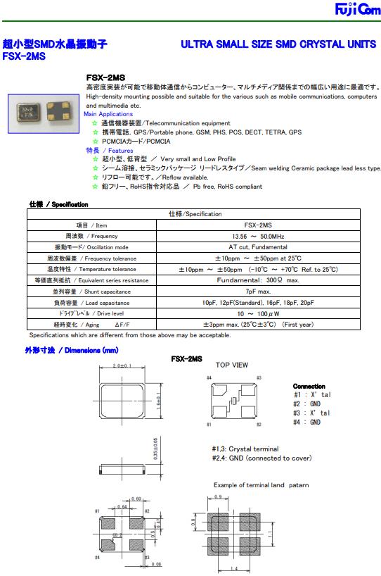 日本進(jìn)口富士通晶振,FSX-2MS無源諧振器,2016mm通信設(shè)備晶振,貼片晶振本身體積小,超薄型石英晶體振蕩器,特別適用于有目前高速發(fā)展的高端電子數(shù)碼產(chǎn)品,因?yàn)?strong>貼片晶振本身小型化需求的市場領(lǐng)域,小型,薄型是對應(yīng)陶瓷振蕩器(偏差大)和普通的石英晶體振蕩器(偏差小)的中間領(lǐng)域的一種性價(jià)比較出色的產(chǎn)品.產(chǎn)品廣泛用于筆記本電腦,無線電話,衛(wèi)星導(dǎo)航SSD,USB,Blu-ray等用途,符合無鉛焊接的高溫回流焊曲線特性.