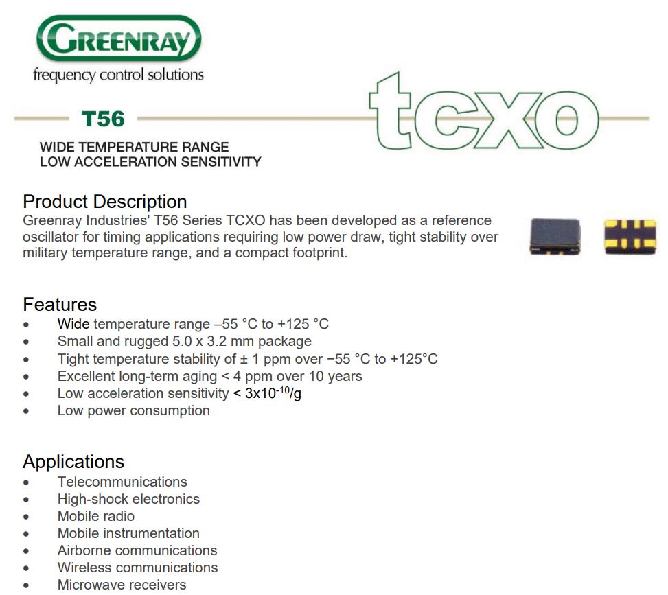 T56-J57-C-LG-32.0MHz-E,耐高溫晶振,6G模塊晶振,Greenray晶振,歐美進口晶振,T56有源晶振,T56-J57-C-LG-32.0MHz-E晶振,5032mm晶振,SMD晶振,頻率32MHz,電壓3.3V,工作溫度-45~105°C,耐高溫晶振,低老化晶振,6G模塊晶振,機載通信晶振,微波接收器晶振,移動儀器儀表晶振.