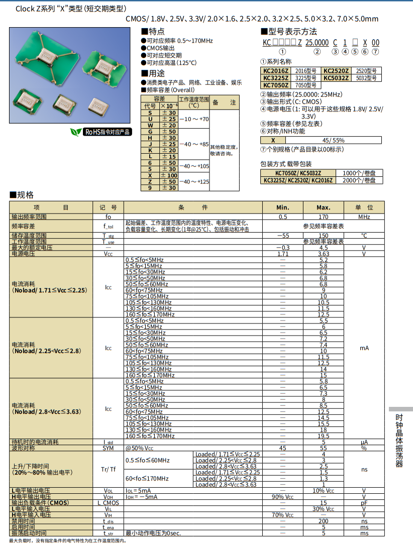 | 頻率容差 (x10 -6) | ±50 |