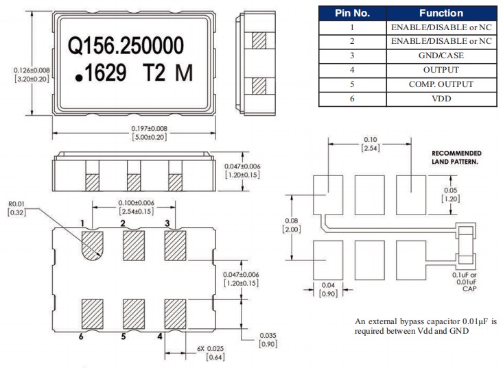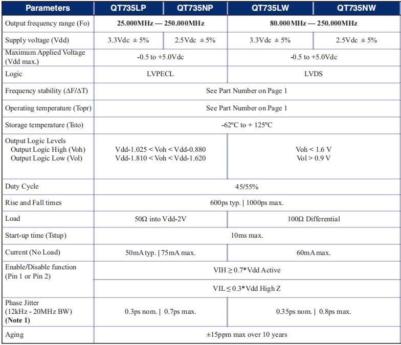 QT735LWE10M-156.250MHz,LVDS差分石英晶振,6G基站晶振參數(shù)表