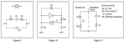 The drive level of a crystal unit is shown by the level of the operating power or the current consumption (see Figures 9,10, and 11). Operating the crystal unit at an excessive power level will result in the degradation of its characteristics, which may cause frequency instability or physical failure of the crystal chip. Design your circuit within absolute maximum drive level.