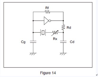 To ensure stable oscillation, the negative resistance of the circuit should be significantly larger than the equivalent series resistance (the oscillation allowance is large). Ensure that the oscillation allowance is at least five times as large as the equivalent series resistance.