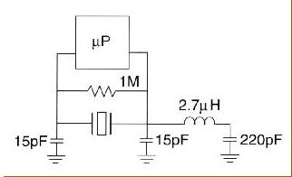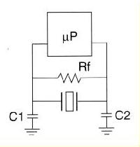 在晶體電抗為感性的并聯(lián)模式下,需要兩個外部電容器(C1)和(C2),以實現(xiàn)振蕩中必要的相移.無論晶體處于基本模式還是泛音模式,都需要C1和C2.C1和C2的值由芯片制造商指定,從6pF到47pF不等.