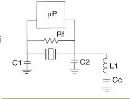 在標準泛音模式下,C2值從10pF到30pF不等.Cc值應(yīng)至少選擇C2值的10倍,因此等效C-equiv.將近似值.