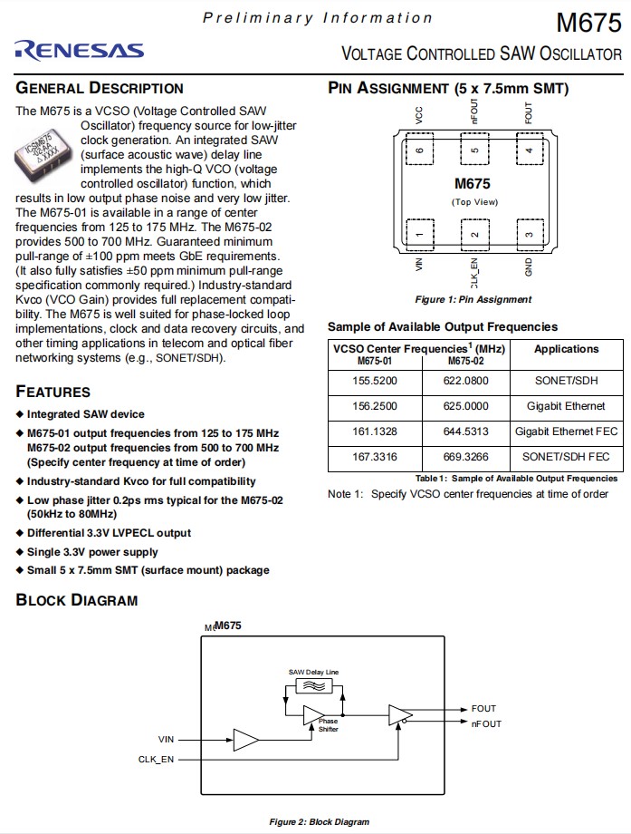 | M675-02-AH | IDT晶振 | OSC VCSO 669.3266MHZ LVPECL SMD | M675 |