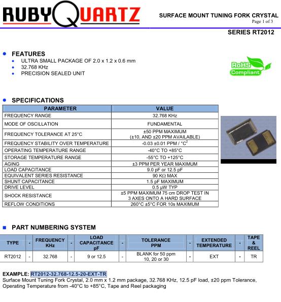 (2)使用音叉晶體和陀螺儀傳感器的產(chǎn)品無法確保能夠通過超聲波方法進(jìn)行清洗,因?yàn)榫д窨赡苁艿狡茐?RT2012無源晶體,盧柏歐美晶體,RT2012-32.768-12.5-20-EXT-TR超小型晶振.
