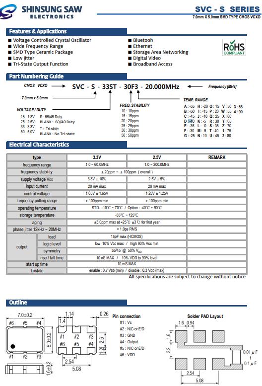 SHINSUNG進口晶振,SVC-S壓控晶體振蕩器,SVC-S-33ST-30F3-20.000MHz晶振,SHINSUNG Crysta成立于1990年,并開始生產(chǎn)石英晶振,濾波器,石英晶體振蕩器,同時向客戶提供最新的新松貼片石英晶振或通孔型晶振單元,時鐘有源晶振,溫補晶振等晶振產(chǎn)品,一直以供應(yīng)優(yōu)質(zhì)晶振產(chǎn)品為信念,不斷給社會創(chuàng)造價值.