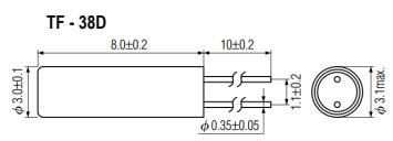 (2) 請仔細(xì)處理內(nèi)外盒與卷帶.外部壓力會導(dǎo)致卷帶受到損壞.SHINSUNG新松晶振,TF-38D插件晶振,TF-38D-25-32.768KHz-12.5pF晶振.