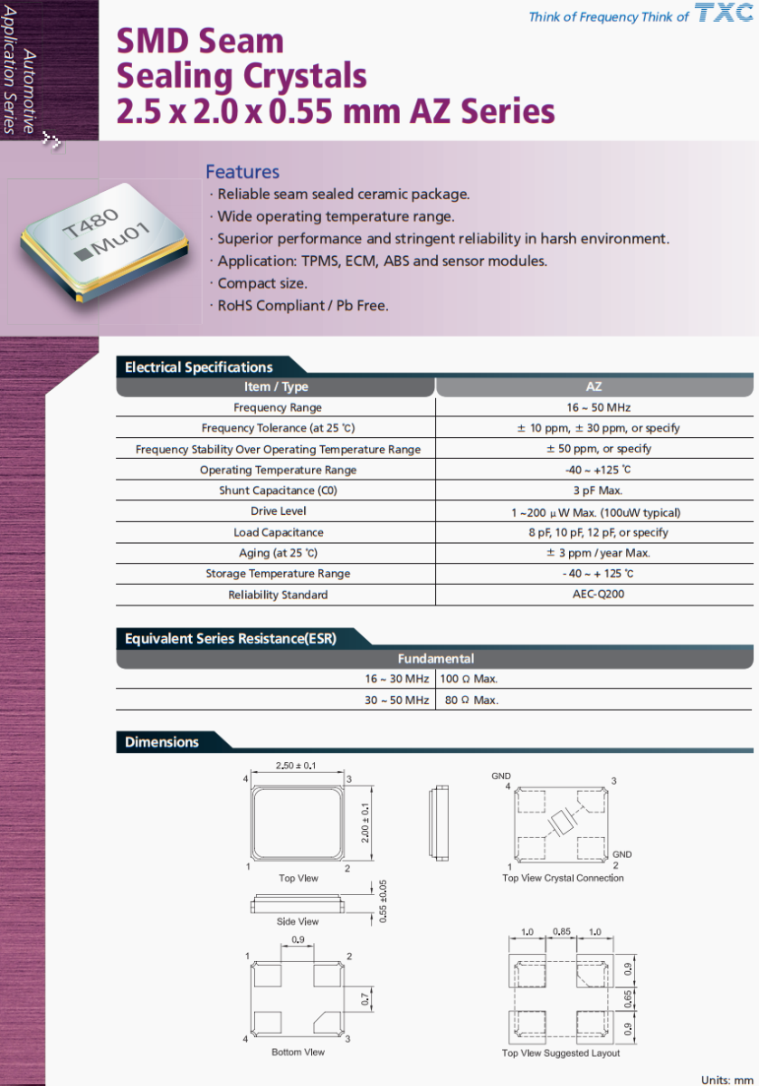 TXC晶振,無鑰匙進(jìn)入模塊晶振,AZ-37.400MEIQ-T晶振