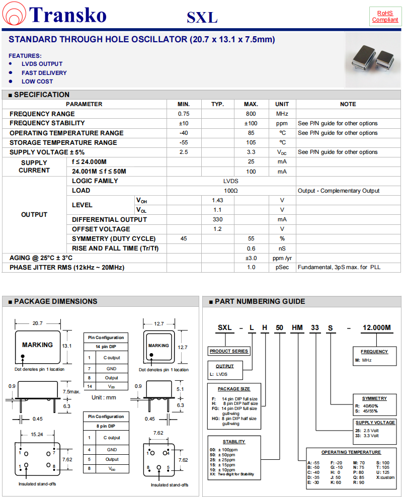 SXL-LH25CQ33S-26.000M,6G應(yīng)用晶振,特蘭斯科石英鐘振,特蘭斯科石英鐘振,SXL進(jìn)口正方形鐘振,SXL-LH25CQ33S-26.000M晶振,石英晶體振蕩器,有源晶振,頻率26MHz,電壓3.3V,工作溫度-40~85°C,頻率穩(wěn)定性25ppm,LVDS輸出晶振,低相位抖動(dòng)晶振,6G應(yīng)用晶振,計(jì)算機(jī)及外圍設(shè)備晶振,存儲(chǔ)區(qū)域組網(wǎng)晶振,寬帶接入晶振,微控制器/ FPGAs晶振,以太網(wǎng)/千兆以太網(wǎng)晶振,光纖通道晶振.