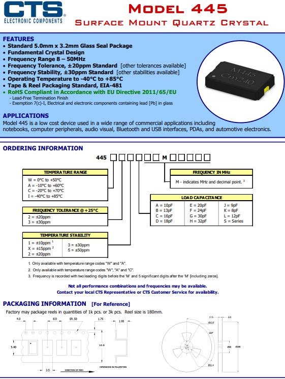| 445A35C24M00000 | CTS晶振 | 445 | 24MHz | 2-SMD, No Lead |