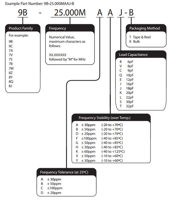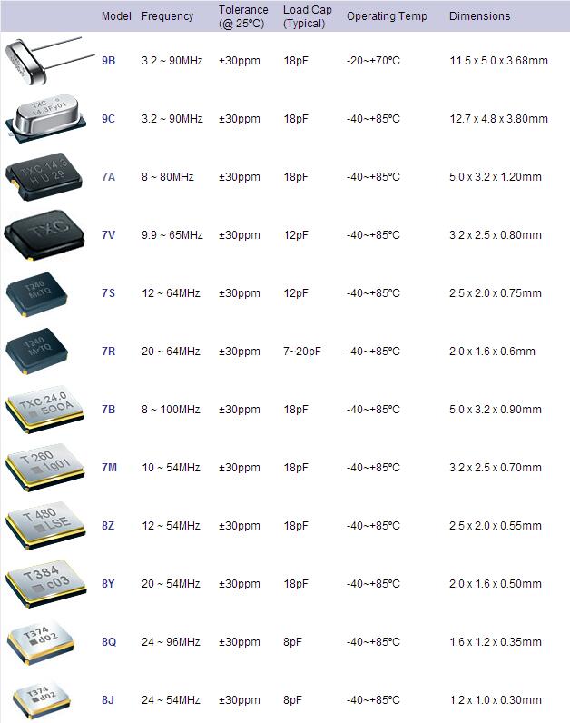 不管進(jìn)口晶振還是國產(chǎn)晶振品牌,每個(gè)品牌產(chǎn)品系列都有相對應(yīng)的料號,料號后面還有產(chǎn)品編碼。那很多時(shí)候晶振料號和編碼我們總是搞不清楚,到底怎么去區(qū)別,今天我們就來說說臺(tái)產(chǎn)晶振品牌,TXC晶振料號編碼如何分辨,現(xiàn)在我們先來看看:7A-16.000MAAE-B這顆無源晶振,這是一顆5032mm尺寸晶振,TXC晶振品牌的料號是7A,編碼是7A-16.000MAAE-那這個(gè)料號代表是什么呢?比如7A是TXC晶振料號,16.000M是代表頻率,A就代表額定頻率偏差是+-30ppm,當(dāng)然也可能是B,如果是B的話就代表50ppm,C的話就代表100ppm,D的話就代表20ppm,按字母分辨,后面那個(gè)A就代表溫度精度的頻率偏差,30ppm,隨著溫度的變化,溫度的不一樣,參數(shù)也會(huì)跟著變化,比如K,那頻率穩(wěn)定度就是+-60ppm,這個(gè)溫度參數(shù)就屬于汽車級晶振,工業(yè)級晶振產(chǎn)品了,后面在J的話就表示晶振負(fù)載電容,這個(gè)負(fù)載電容就是18pf,假如是K的話就代表TXC晶振的負(fù)載電容是20PF,按照字母以此類推,然后在最后面T或者B的話就代表包裝,編帶還是袋裝分類了。我解釋的這么清楚,小盆友們應(yīng)該都對有源晶振了解了吧,如果還不了解就打TXC晶振技術(shù)部門電話0755-27838351資訊吧。
