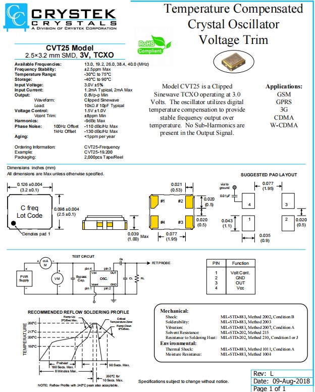 | CVT25-19.200 | Crystek Crystal | CVT25 | TCXO | 19.2MHz |