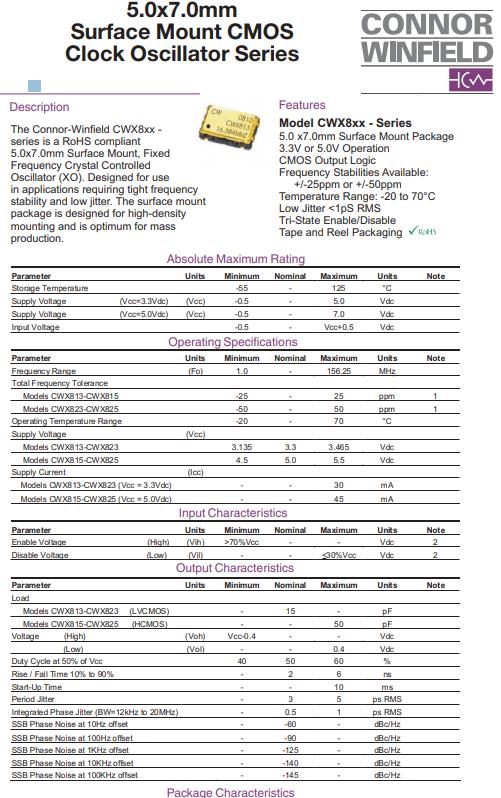 更多>>低老化的時鐘振蕩器成了Connor-Winfield的主流產(chǎn)品CWX813-032.768M