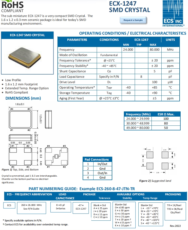 | ECS-480-8-47-JTN-TR | ECS晶振 | ECX-1247 | 48MHz | -40°C ~ 85°C |