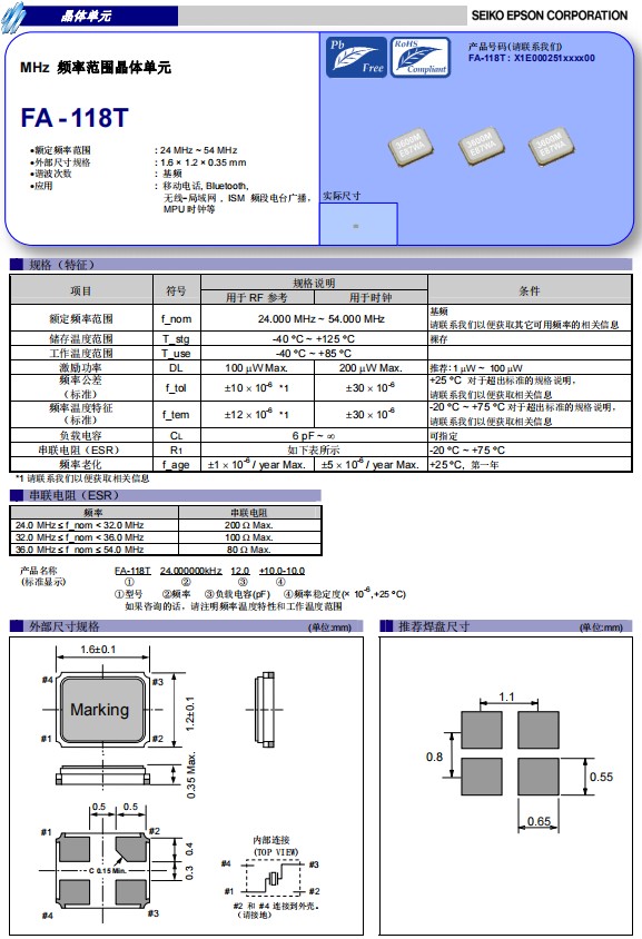 FA-118T貼片晶振X1E000251006800適用于可穿戴設(shè)備應(yīng)用,X1E000251006500,無源晶振