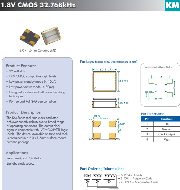 | KM3270002 | Diodes Crystal | SaRonix-eCera™ KM | 32.768kHz | ±25ppm | -40°C ~ 85°C |