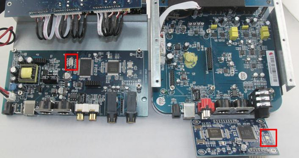 這不拆不要緊,一拆卻出呼我的意料,同樣的聲卡可是內(nèi)部許多載元器件卻截然不同,就拿最常用的晶振來說,左邊是紅色那款看它內(nèi)部用的是一顆HC-49/S貼片晶振,再來看看右邊這款聲卡用的卻是5032mm,24,000MHZ有源晶振,高精度貼片晶振,咱們先來看一組圖片,