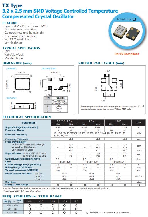 | TXETBCSANF-12.800000 | Taitien | TX | TCXO | 12.8MHz | 2.8 V ~ 3.3 V |