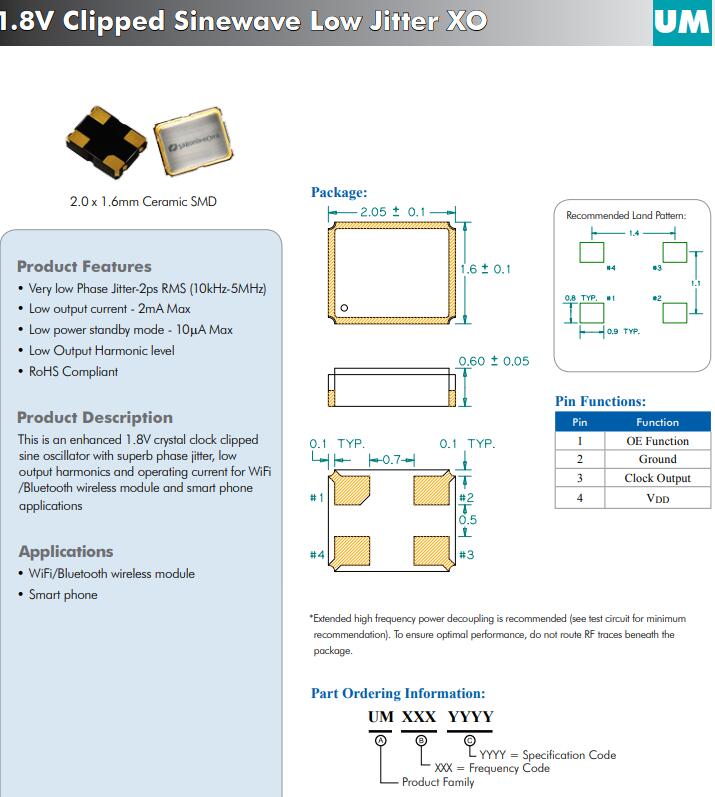 這是一個(gè)增強(qiáng)的1.8V水晶時(shí)鐘剪接正弦有源晶體振蕩器具有高超的相位抖動(dòng),低輸出諧波和工作電流為WiFi/藍(lán)牙無線模塊和智能手機(jī)應(yīng)用程序
