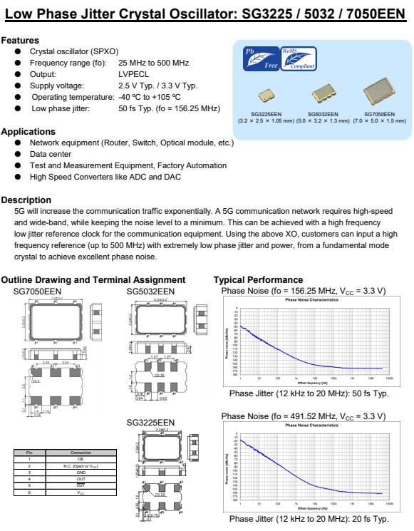 愛普生發(fā)布首款優(yōu)質(zhì)的LVPECL差分晶振X1G005221000200,5G將成倍增加通信流量。5G通信網(wǎng)絡(luò)要求高速還有寬頻帶,同時把噪音降到最低。這可以通過高頻率來實(shí)現(xiàn)用于通信設(shè)備的低抖動基準(zhǔn)時鐘。使用上述XO,客戶可以輸入一個高頻率參考(高達(dá)500 MHz),具有極低的相位抖動和功率,從基本模式晶體實(shí)現(xiàn)優(yōu)良的相位噪聲。